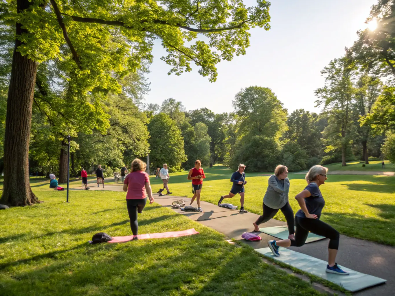 A group of people participating in a MOVE program session, focusing on improving mobility and physical fitness, led by a certified instructor.